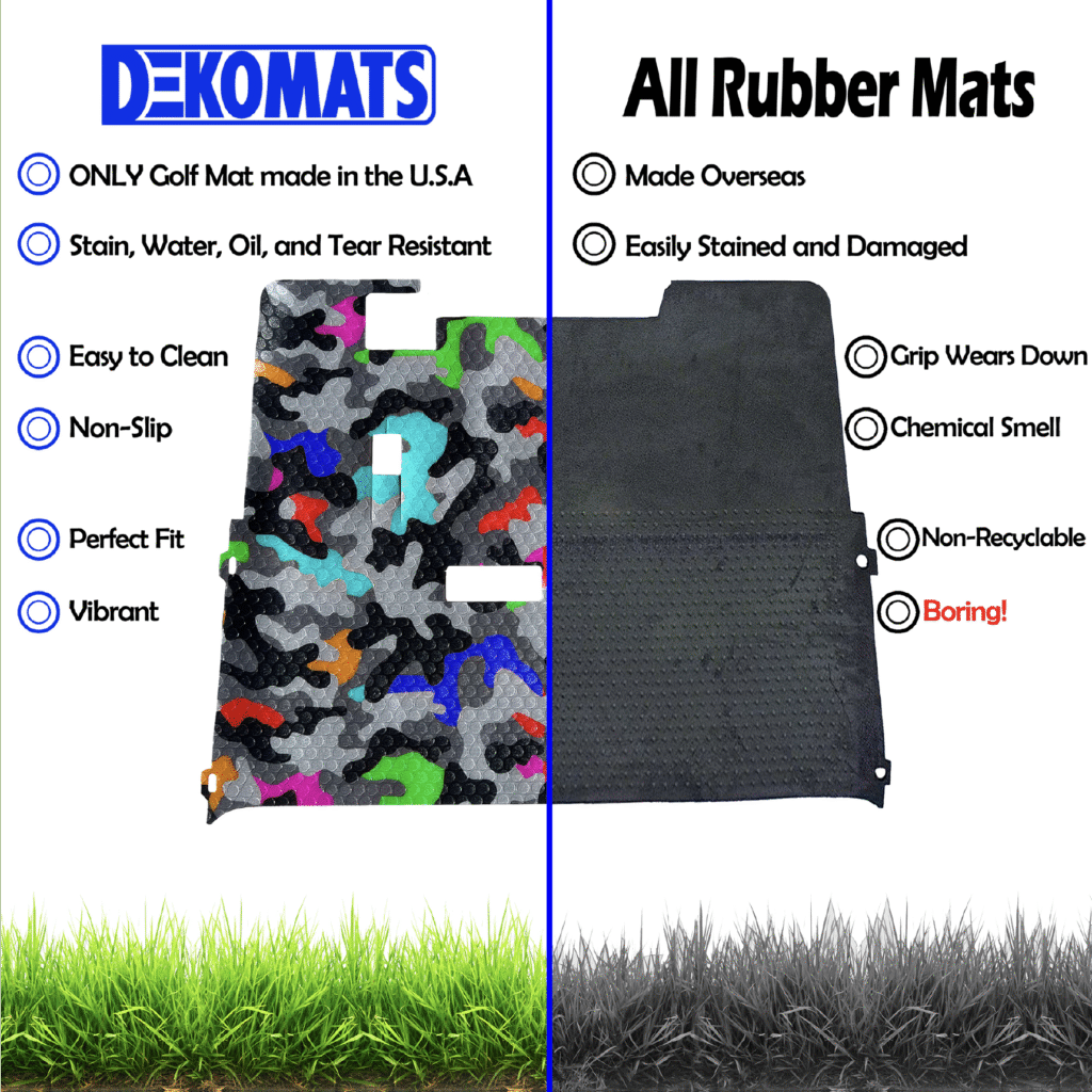 Dekomats: Where durability meets design. Your golf cart reflects your personality and so should your floor mats. Dekomats can be designed to match your cart.